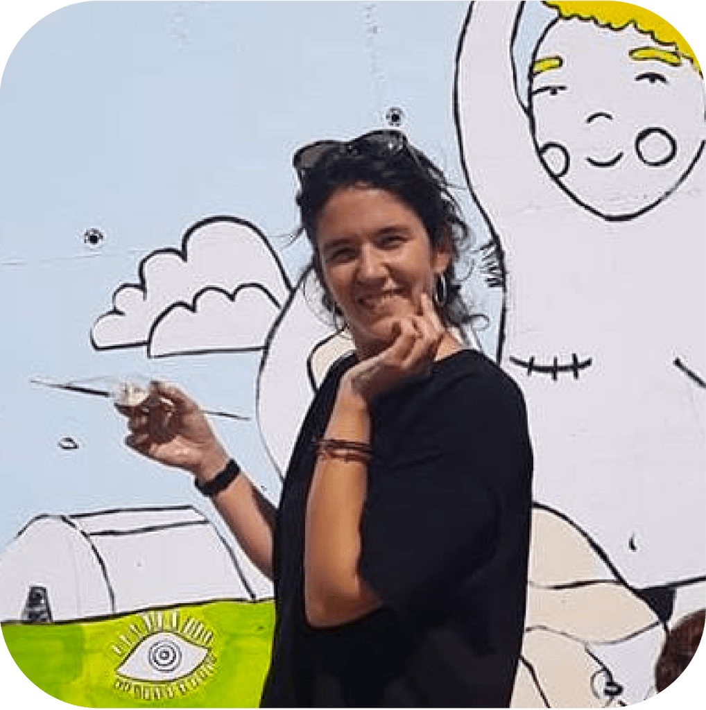 Nascuda i resident a Menorca, amb sis anys de formació a Barcelona i Madrid. Treballa com a dissenyadora a una empresa menorquina i com a freelance amb projectes de caràcter social. Gràcies a la seva trajectòria militant a diferents col·lectius de l’illa i de fora, la seva obra està plena de significat i missatge. Habita l’art com una eina de revolució i canvi per poder arribar a la població de la manera més directa i significativa.